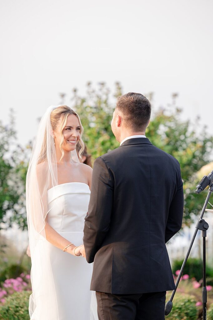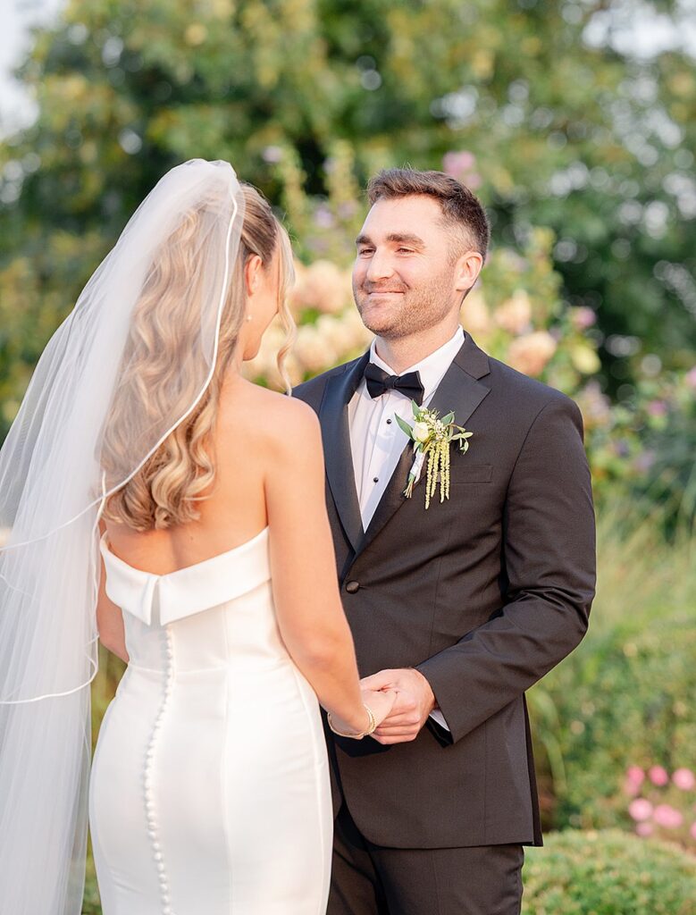 Their engagement story is one straight out of a travel postcard. During a group trip to Greece where they visited Mykonos, Paros, and finally Santorini, Matt proposed overlooking the Mediterranean Sea. The sun setting over whitewashed cliffs, the sea stretching endlessly behind them. That moment in Santorini set the tone for the wedding they dreamed of: classic, romantic, and infused with natural beauty.