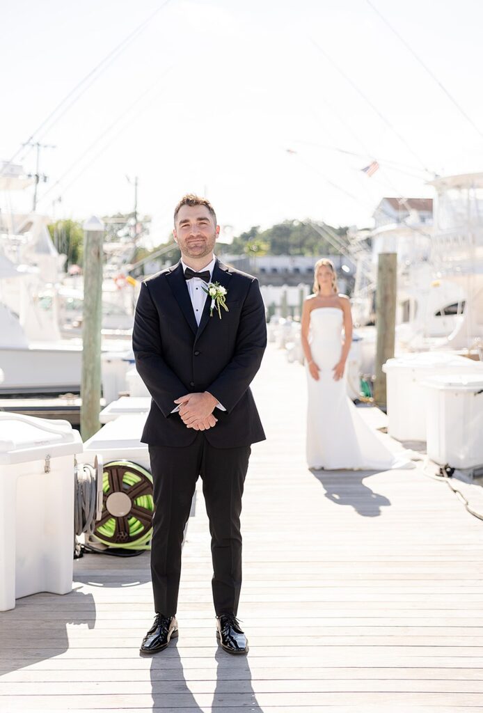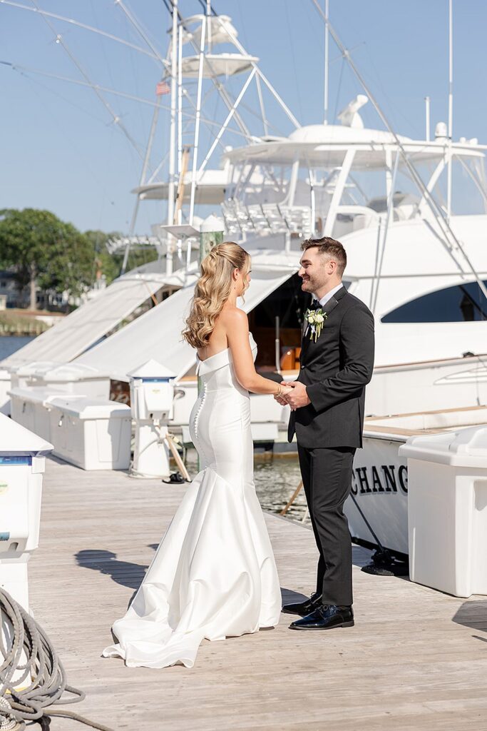 Crystal Point Yacht Club was the perfect setting for Kate and Matt. The venue’s panoramic waterfront views brought in that subtle beachy feel Kate wanted, while the ballroom offered an elegant backdrop for their celebration. From the getting-ready moments to their portraits along the marina, everything about their day felt genuine and full of heart. Kate and Matt have a calm, joyful energy together that makes photographing them feel natural and unposed.