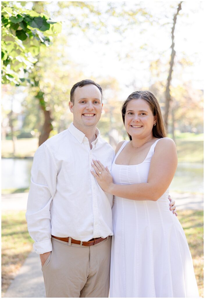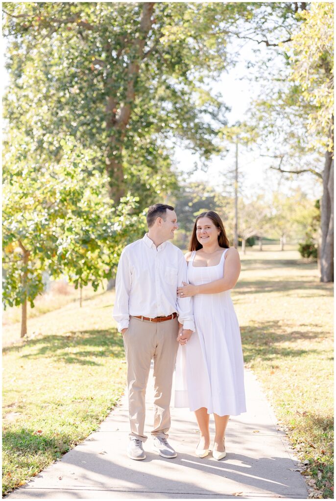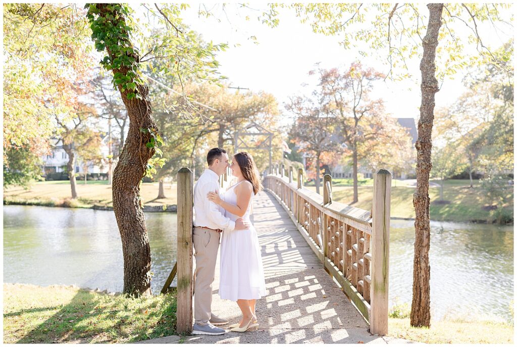 Divine Park in Spring Lake, New Jersey is one of my absolute favorite locations for engagement sessions. The open pathways, lush greenery, and beautiful fall foliage create such a timeless backdrop, especially during autumn. Mackenzie and Tom’s engagement session took place on a perfectly crisp fall day, and the light could not have been more dreamy.